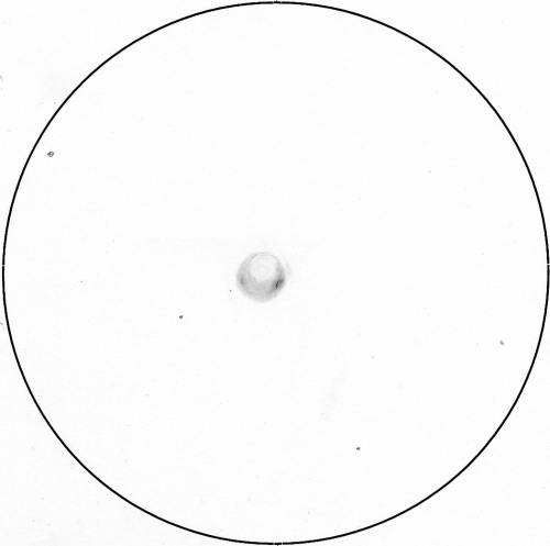 heller, N-Rand schwach begrenzt, am SW-Rand blickweise ein Stern (?).
